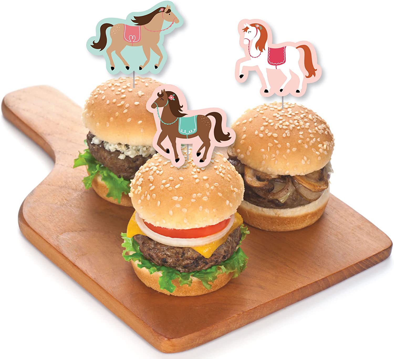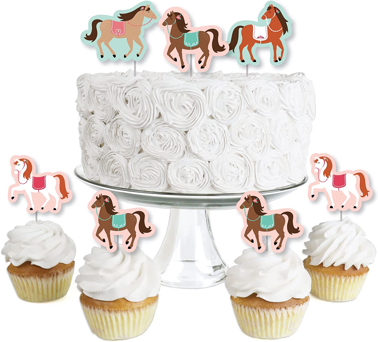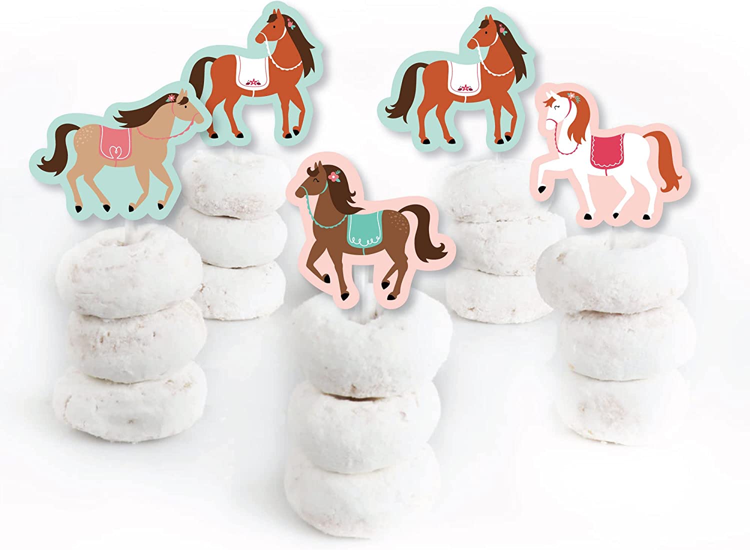 • EASY PARTY DECORATIONS: Run Wild Horses party picks make it easy to style a pony theme party. Create impressive cupcake towers with decorated treats placed on a tiered stand at the candy buffet table, style adorable tables with individual cupcakes at each place setting, or make creative centerpieces using decorated treats and a coordinating treat stand.