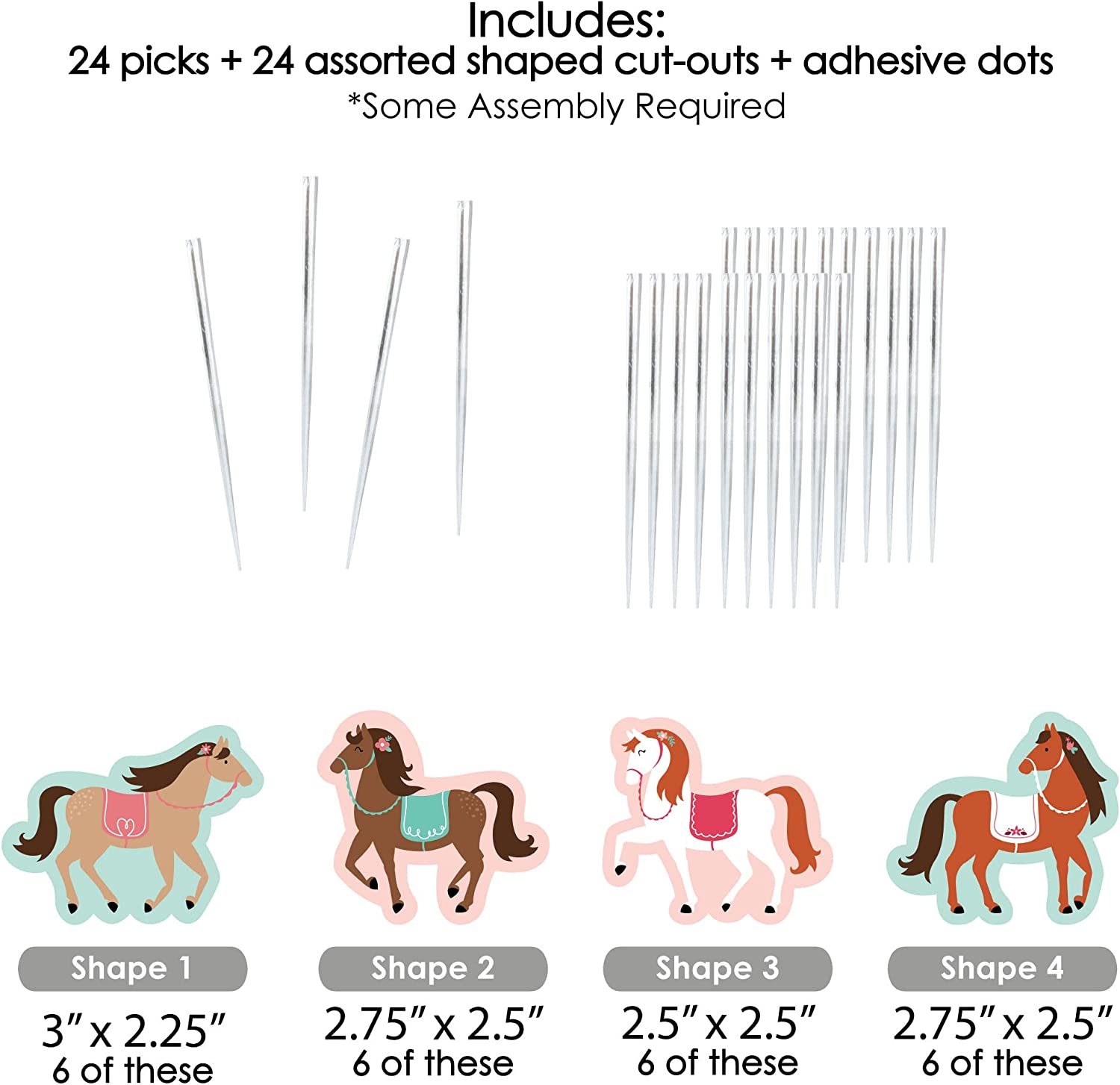 • Run Wild Horses Dessert Cupcake Toppers INCLUDES 24 clear treat picks, 24 shaped paper cut outs and stickers for easy assembly. DIY Run Wild Horses cupcake supplies are perfect for a pony birthday party.