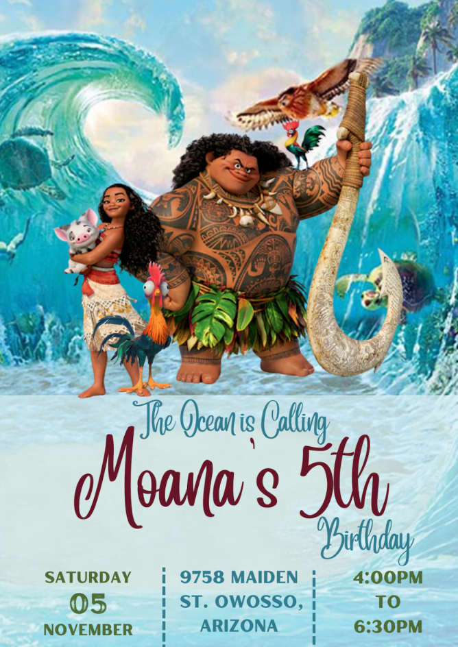 Moana Birthday Party Invitations