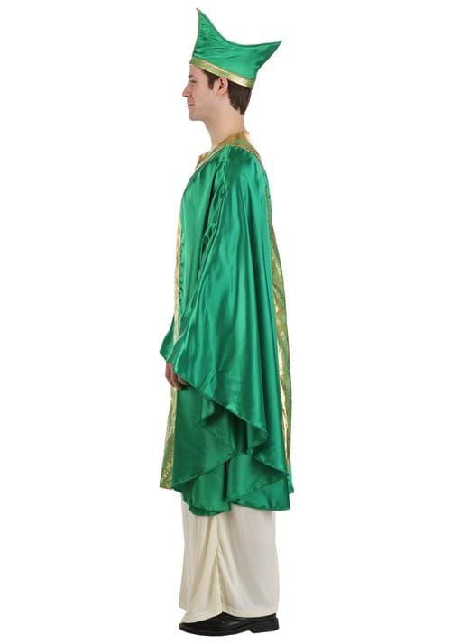 • Sleeveless satin tunic drapes over your head, metallic gold collar, front and back with printed graphics