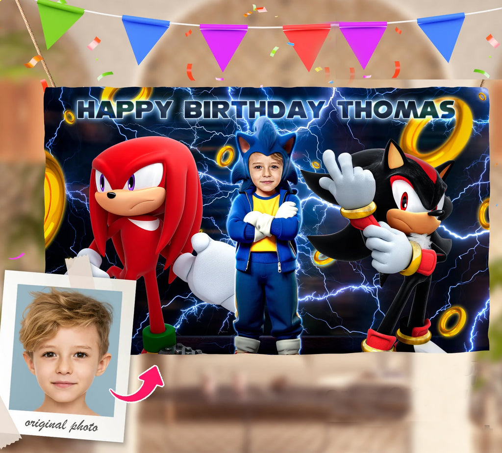 Custom Sonic Birthday Backdrop - 60x 40 Inch