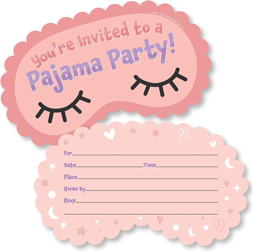 Pajama Slumber Party - Shaped Fill-In Invitations - Girls Sleepover Birthday Party Invitation Cards with Envelopes - Set of 12