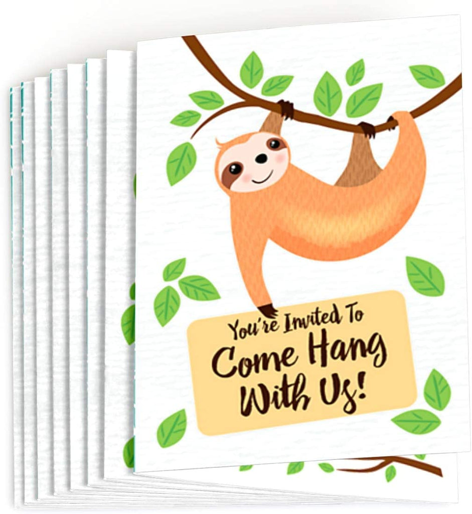 Let's Hang - Sloth - Fill In Baby Shower or Birthday Party Invitations (8 count)