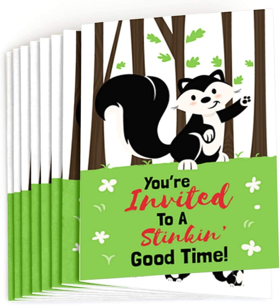Little Stinker - Fill In Woodland Skunk Baby Shower or Birthday Party Invitations (8 count)