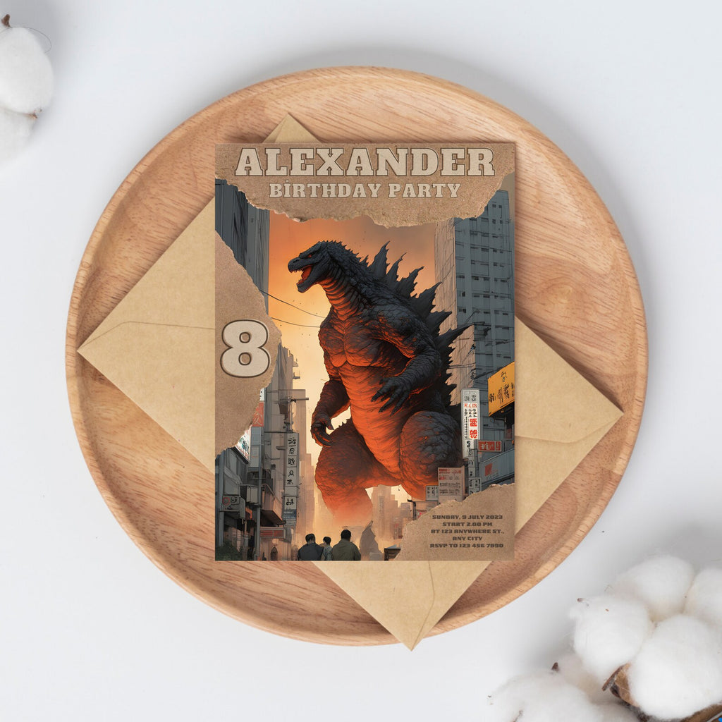 Custom Godzilla Birthday Party Invitation Cards (8 count)