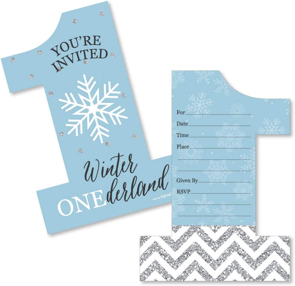 Onederland - Shaped Fill-in Invitations - Holiday Snowflake Winter Wonderland Birthday Party Invitation Cards with Envelopes - Set of 12