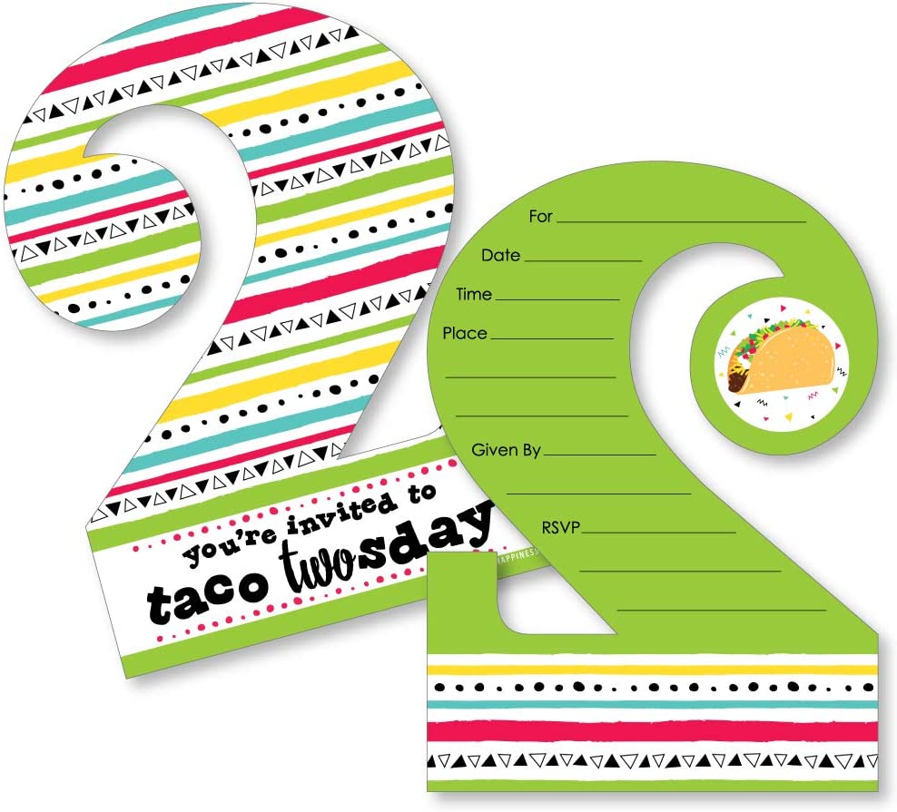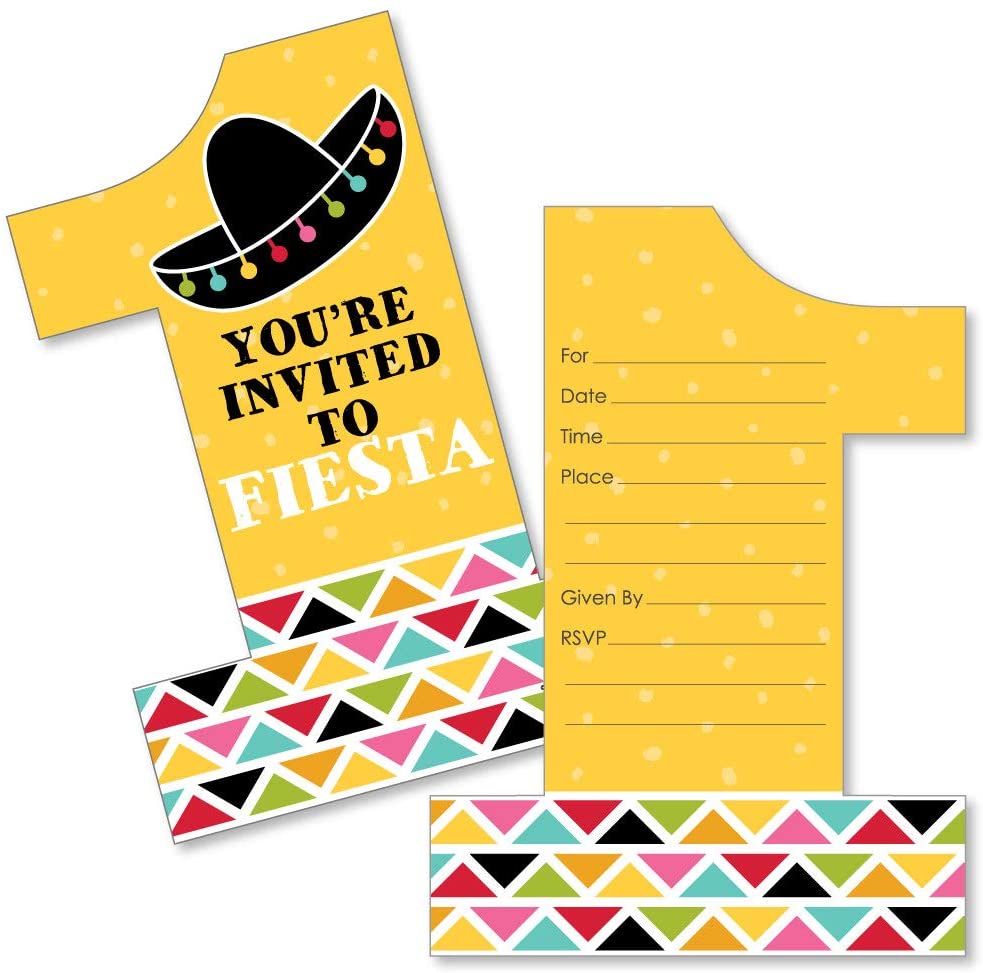 1st Birthday Let's Fiesta - Shaped Fill-In Invitations - Mexican Fiesta First Birthday Party Invitation Cards with Envelopes - Set of 12