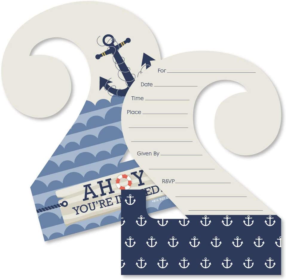 2nd Birthday Ahoy - Nautical - Shaped Fill-In Invitations - Second Birthday Party Invitation Cards with Envelopes - Set of 12