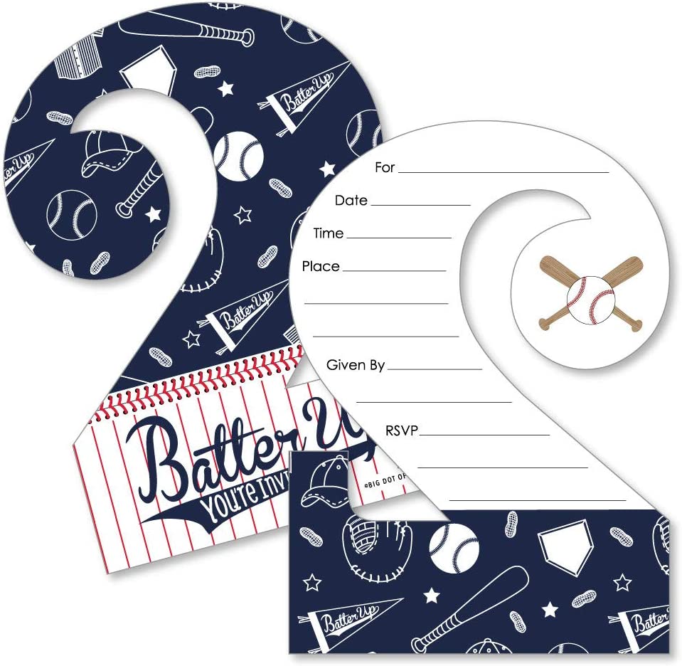 1st Birthday Batter Up - Baseball - Shaped Fill-In Invitations - First Birthday Party Invitation Cards with Envelopes - Set of 12