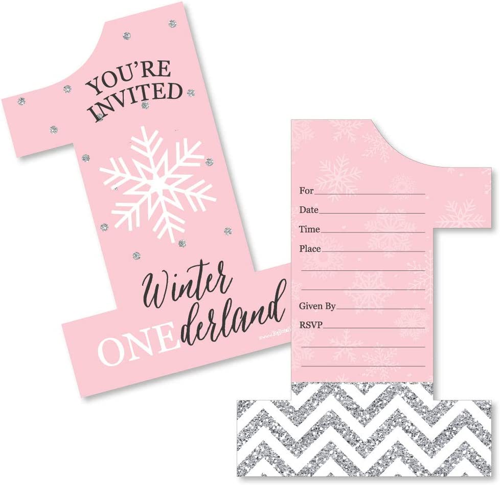 Pink Onederland - Shaped Fill-in Invitations - Holiday Snowflake Winter Wonderland Birthday Party Invitation Cards with Envelopes - Set of 12