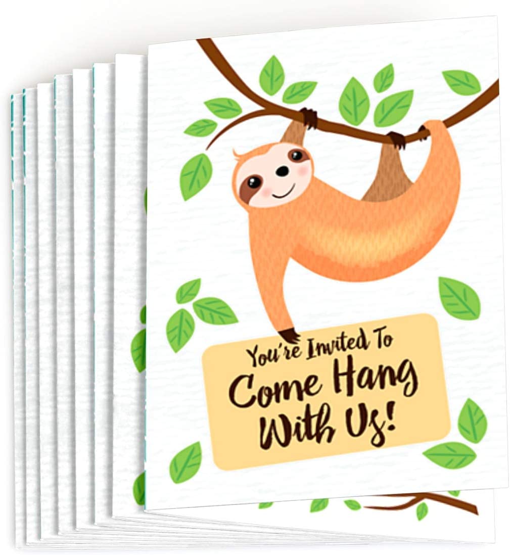 Let's Hang - Sloth - Fill In Baby Shower or Birthday Party Invitations (8 count) is backordered and will ship as soon as it is back in stock.