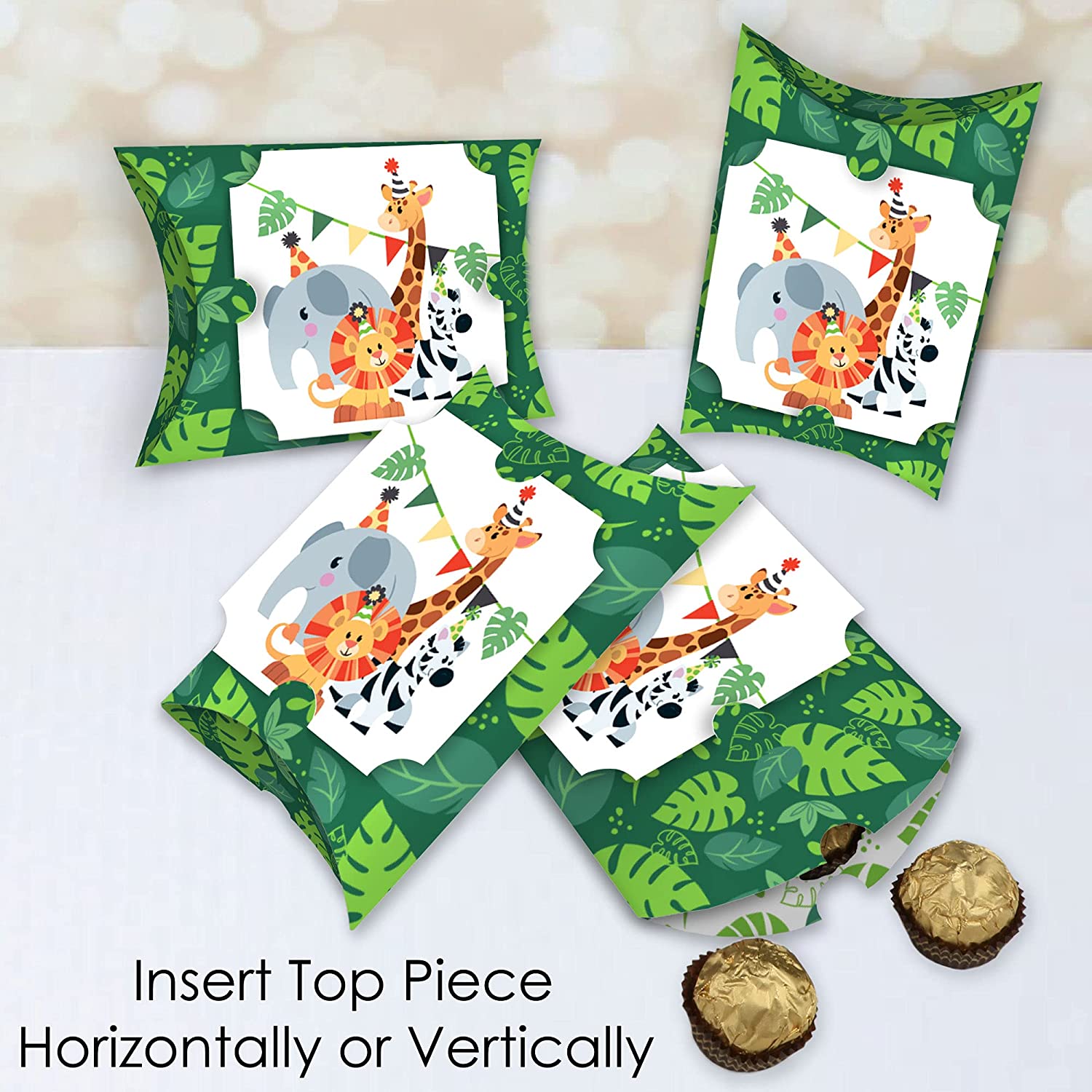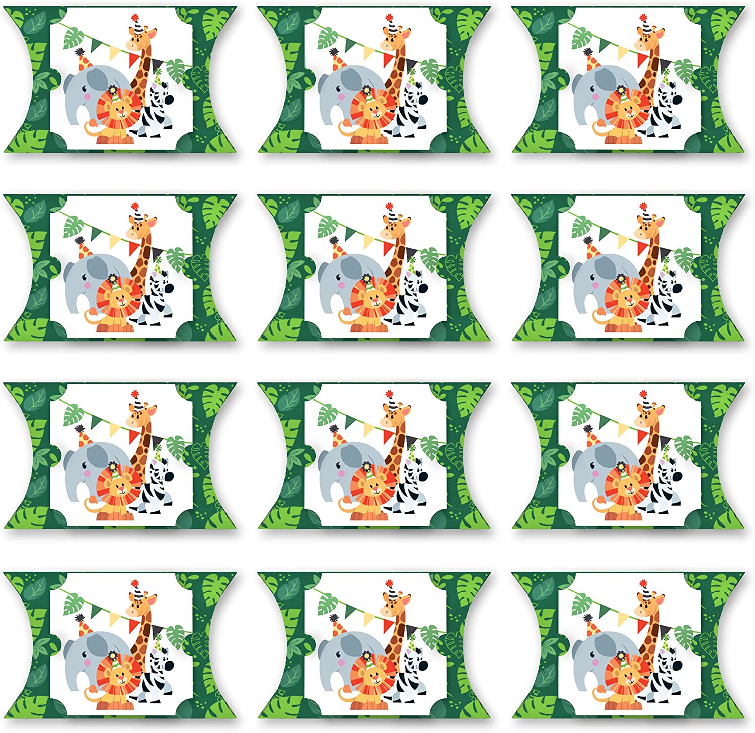 Jungle Party Animals - Favor Gift Boxes - Safari Zoo Animal Birthday Party or Baby Shower Large Pillow Boxes - Set of 12 is backordered and will ship as soon as it is back in stock.