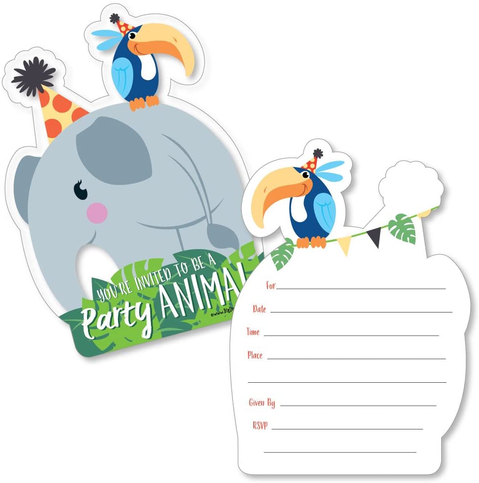 Jungle Party Animals - Shaped Fill-In Invitations - Safari Zoo Animal Birthday Party or Baby Shower Invitation Cards with Envelopes - Set of 12 is backordered and will ship as soon as it is back in stock.