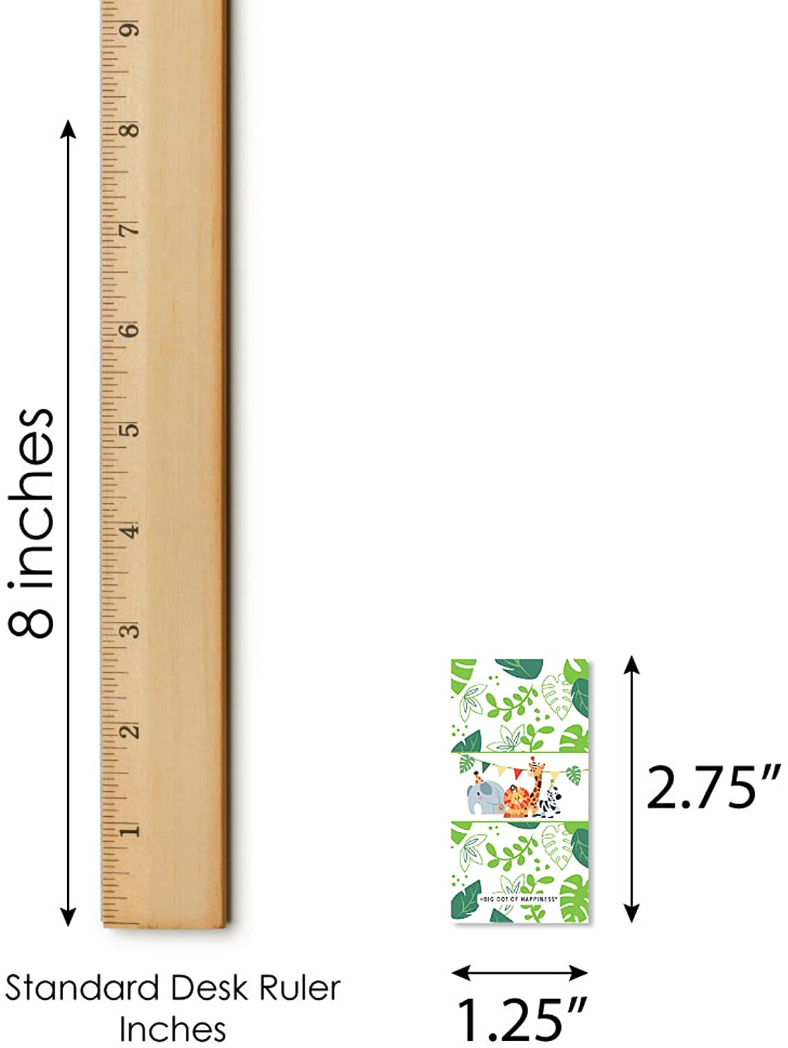 • Jungle Party Animals mini candy bar wrappers MEASURE 1.25” wide x 2.75” high and will quickly add a personal touch to all your sweet treats. It is easy to wrap Hershey's Miniature candy bars with these adorable Jungle Party Animals stickers!
