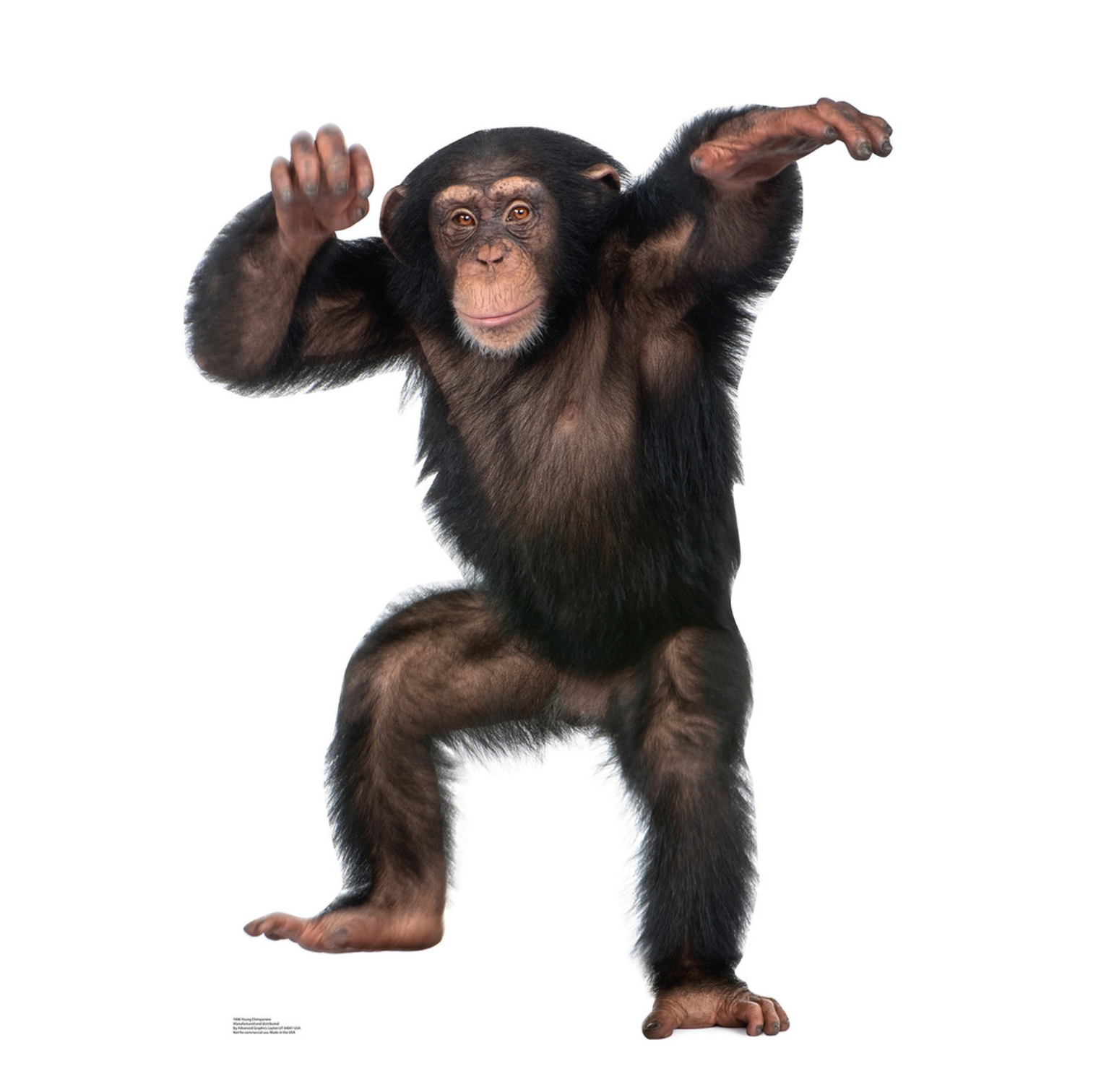 Young Chimpanzee Standee 42 x 33 (height x width) inches is backordered and will ship as soon as it is back in stock.