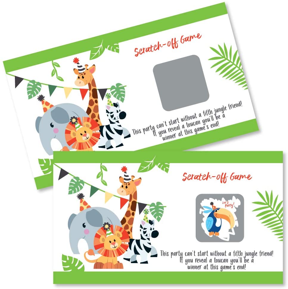 Jungle Party Animals - Safari Zoo Animal Birthday Party or Baby Shower Game Scratch Off Cards - 22 Count