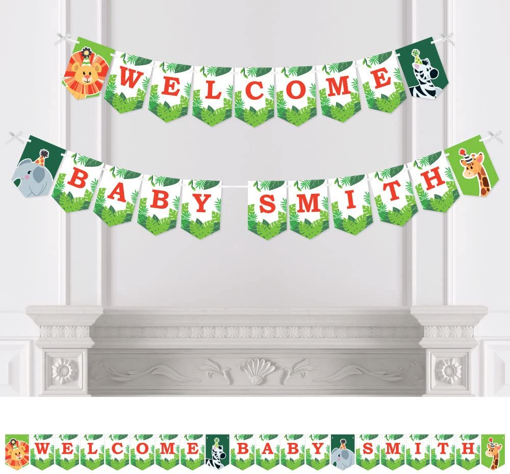 Personalized Jungle Party Animals - Custom Safari Zoo Animal Baby Shower Bunting Banner & Decorations - Welcome Baby Custom Name Banner