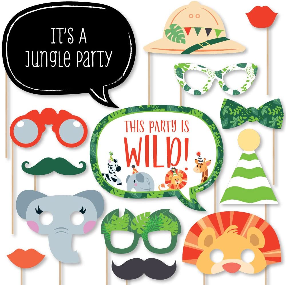 Jungle Party Animals - Safari Zoo Animal Birthday Party or Baby Shower Photo Booth Props Kit - 20 Count