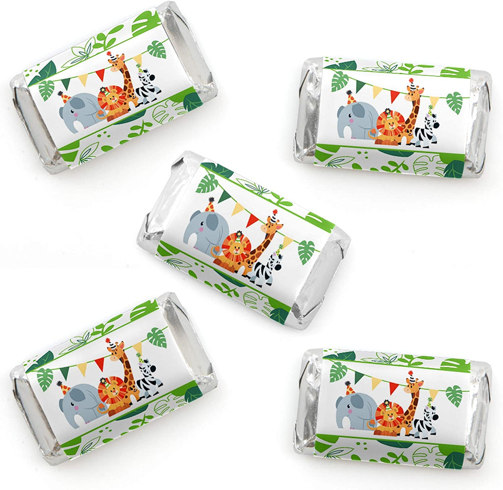 Jungle Party Animals - Mini Candy Bar Wrapper Stickers - Safari Zoo Animal Birthday Party or Baby Shower Small Favors - 40 Count
