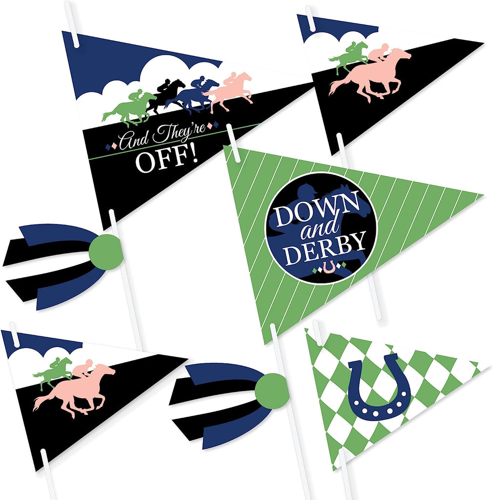 Kentucky Horse Derby - Triangle Horse Race Party Photo Props - Pennant Flag Centerpieces - Set of 20