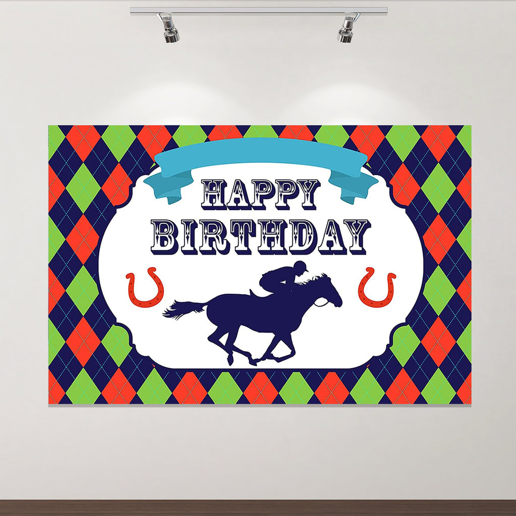 Custom Horse Racing Birthday Poster Backdrop 60x40 Inch