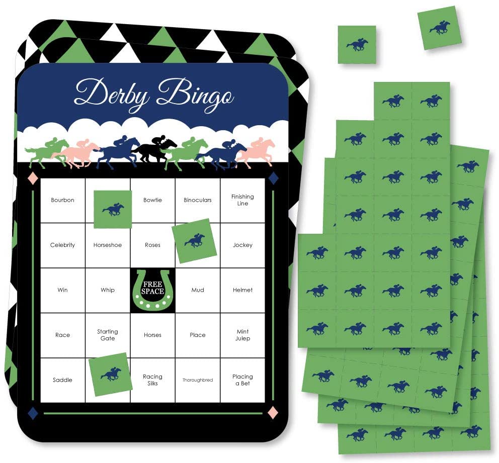 Kentucky Horse Derby - Bar Bingo Cards and Markers - Horse Race Party Bingo Game - Set of 18