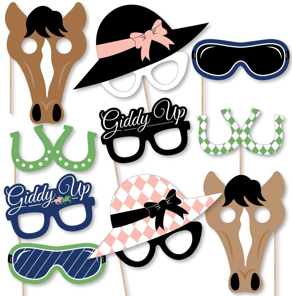 Kentucky Horse Derby Glasses/Masks/Headpieces - Paper Card Stock Horse Race Party Photo Booth Props Kit - 10 Count