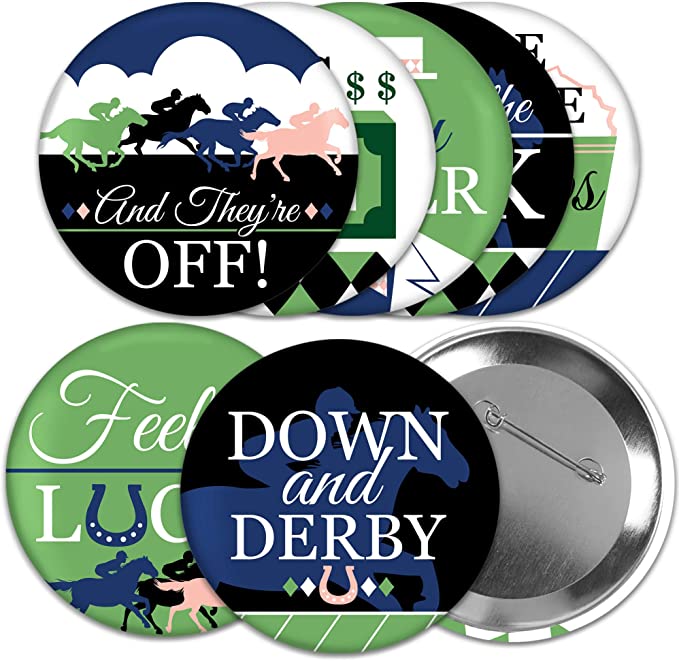 Kentucky Horse Derby - 3 inch Horse Race Party Badge - Pinback Buttons - Set of 8