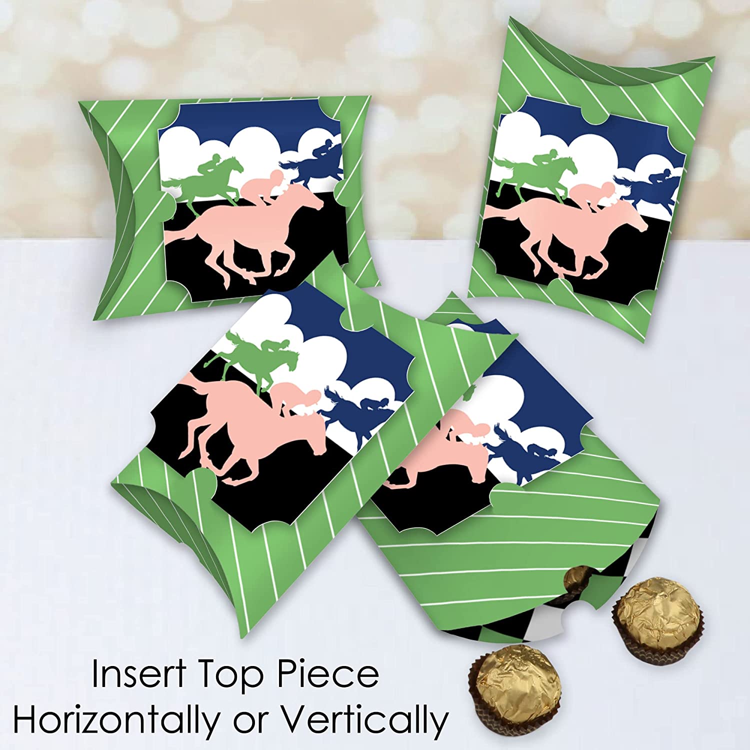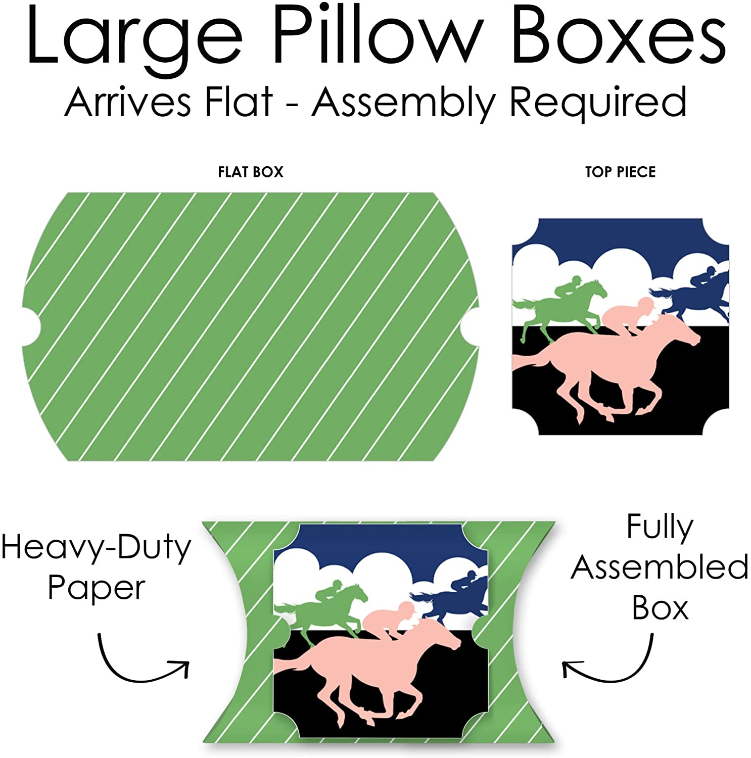 Kentucky Horse Derby - Favor Gift Boxes - Horse Race Party Large Pillow Boxes - Set of 12 is backordered and will ship as soon as it is back in stock.