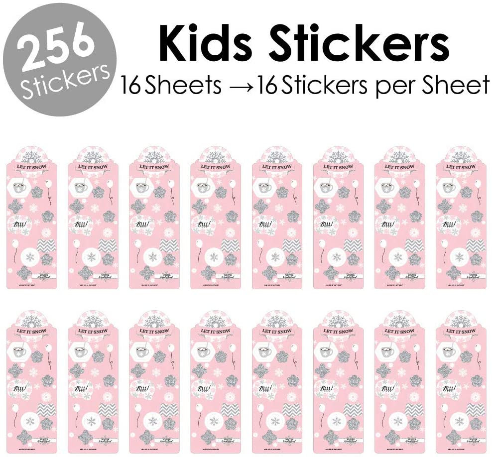 Pink Winter Wonderland - Holiday Snowflake Birthday Party and Baby Shower Favor Kids Stickers - 16 Sheets - 256 Stickers is backordered and will ship as soon as it is back in stock.