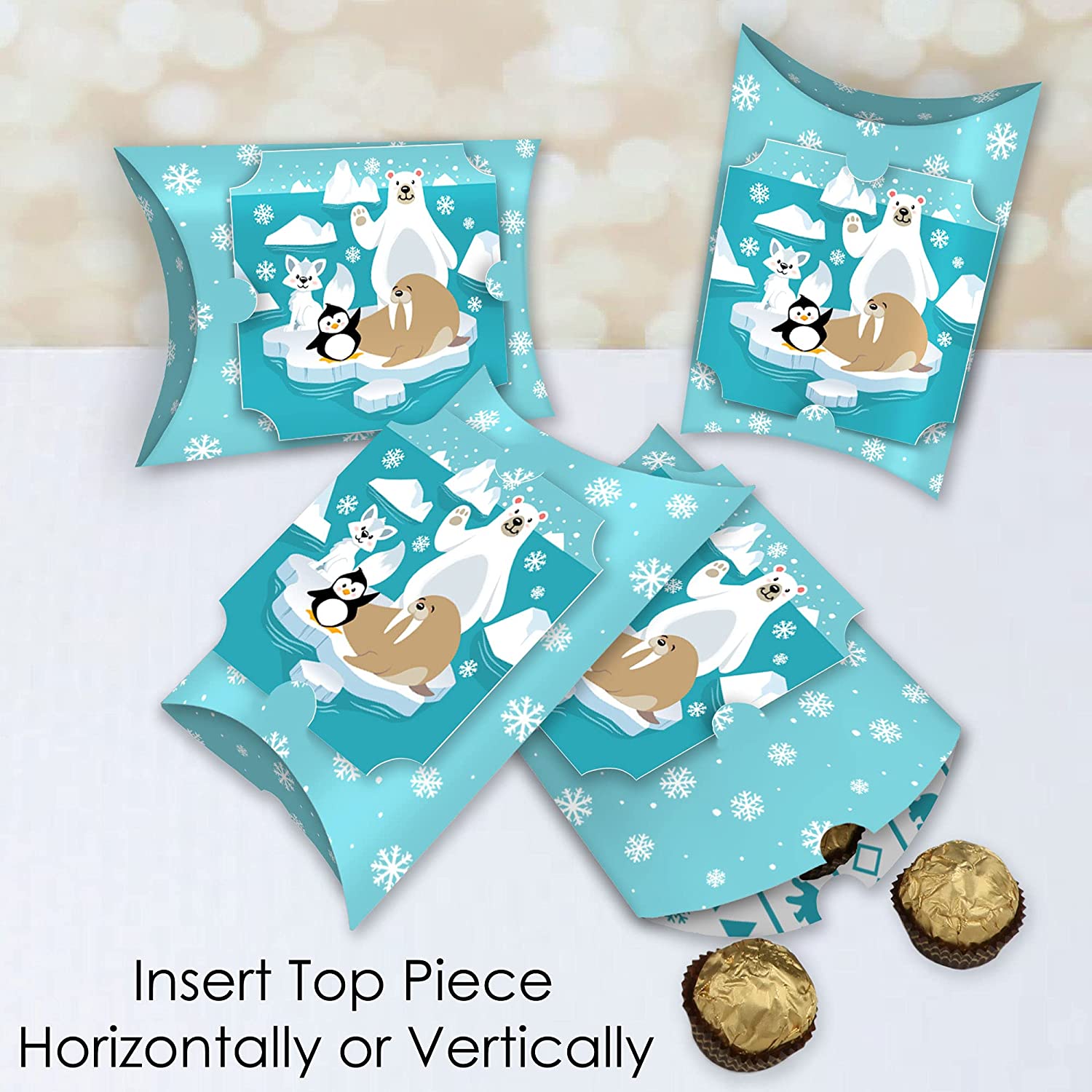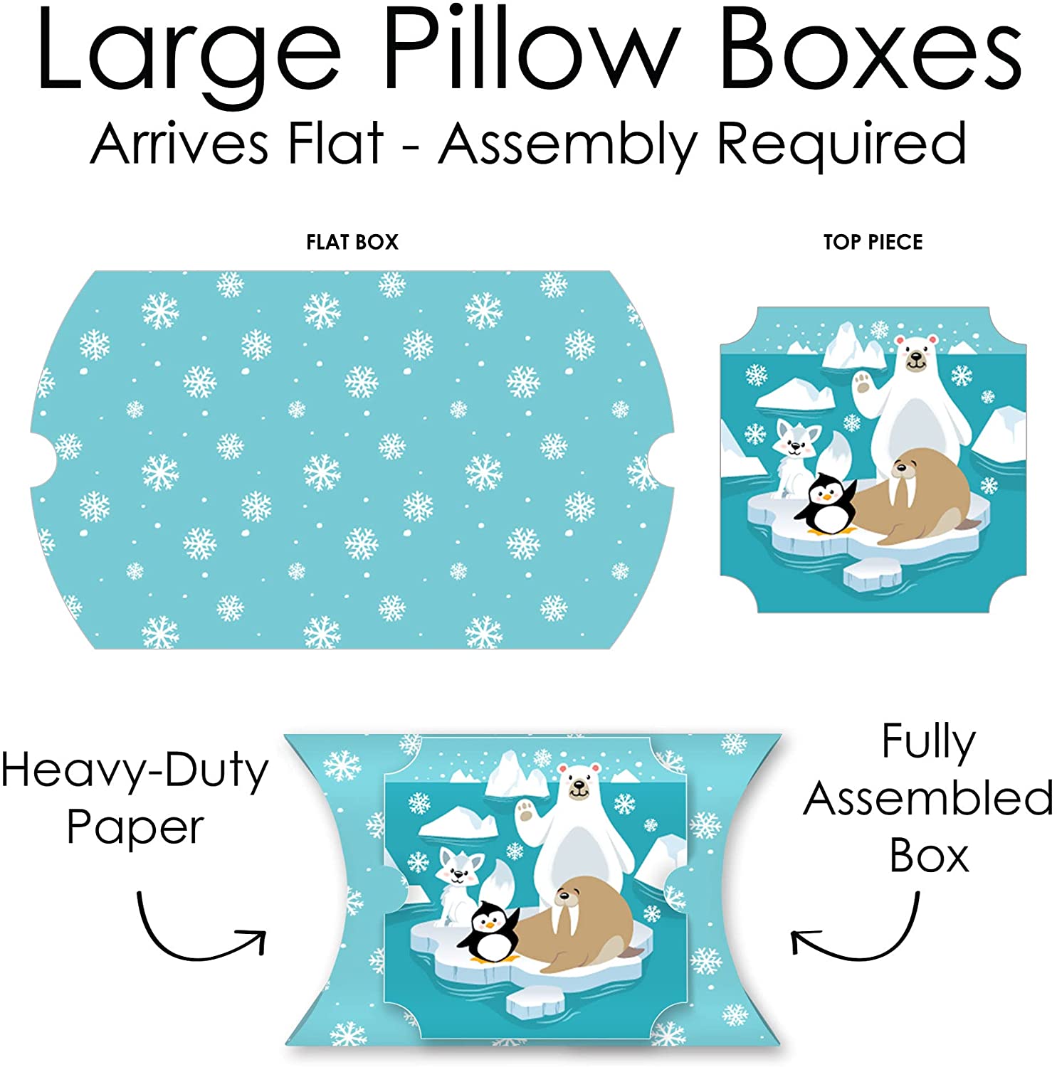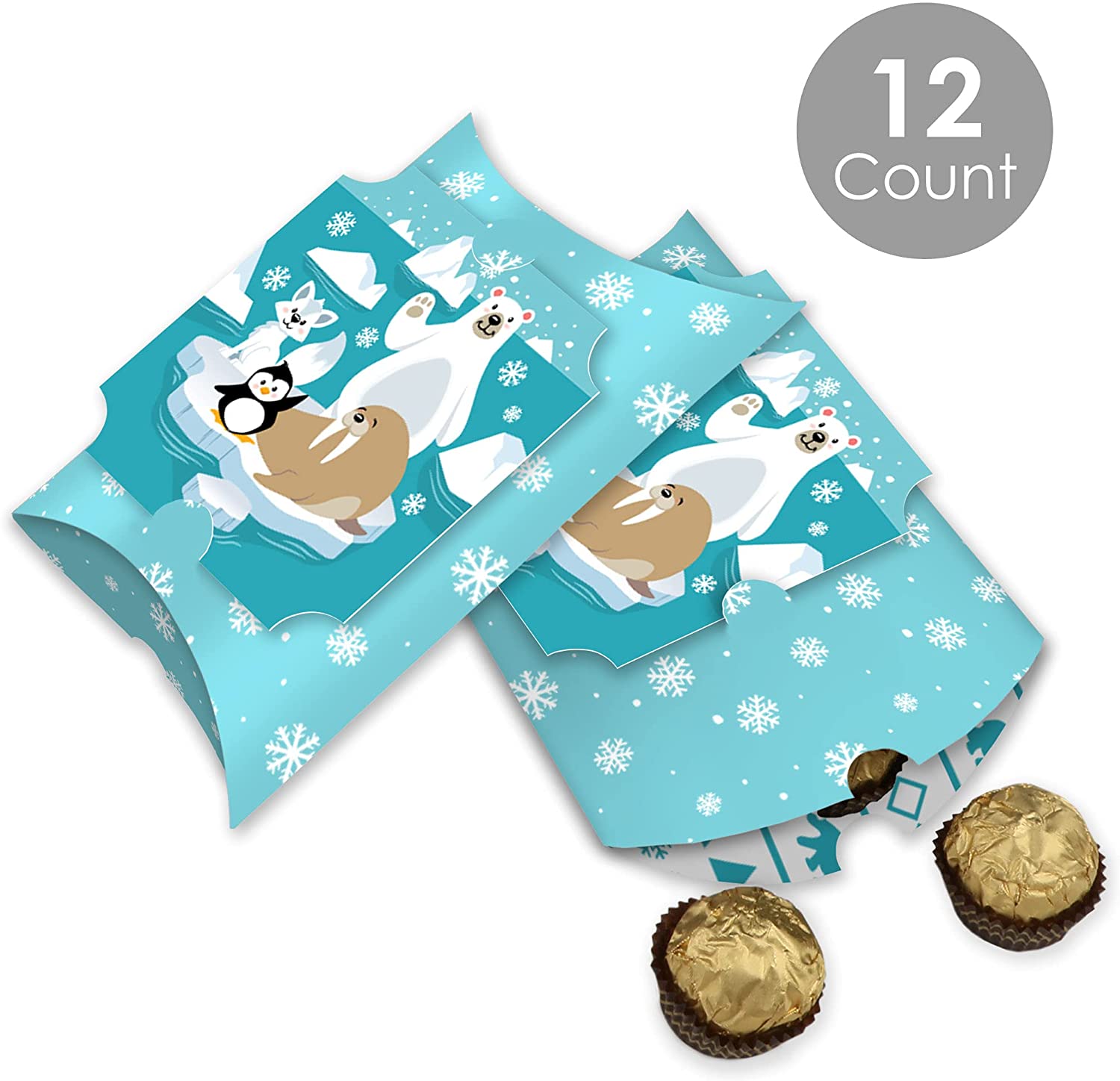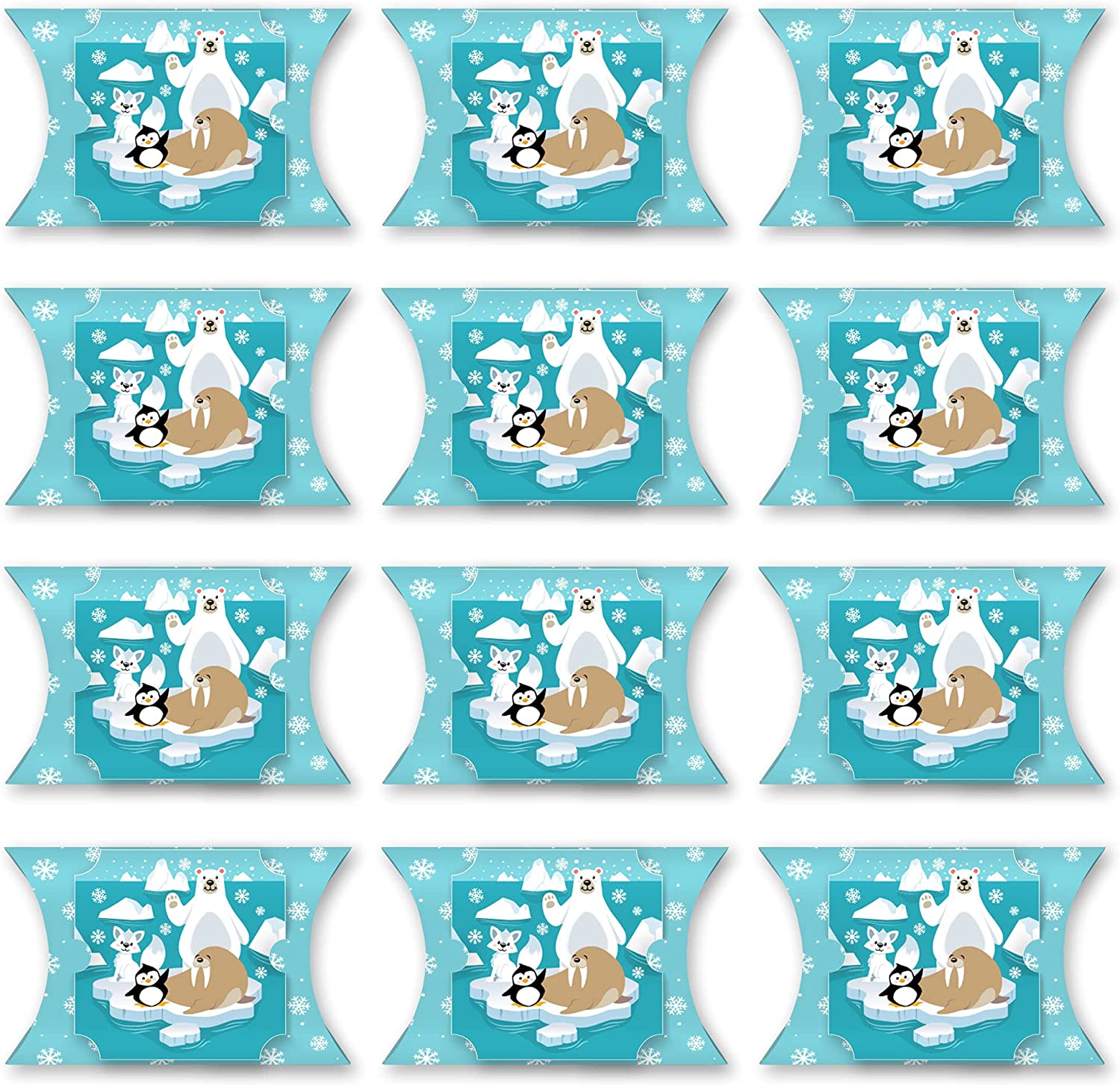Arctic Polar Animals - Favor Gift Boxes - Winter Baby Shower or Birthday Party Large Pillow Boxes - Set of 12 is backordered and will ship as soon as it is back in stock.