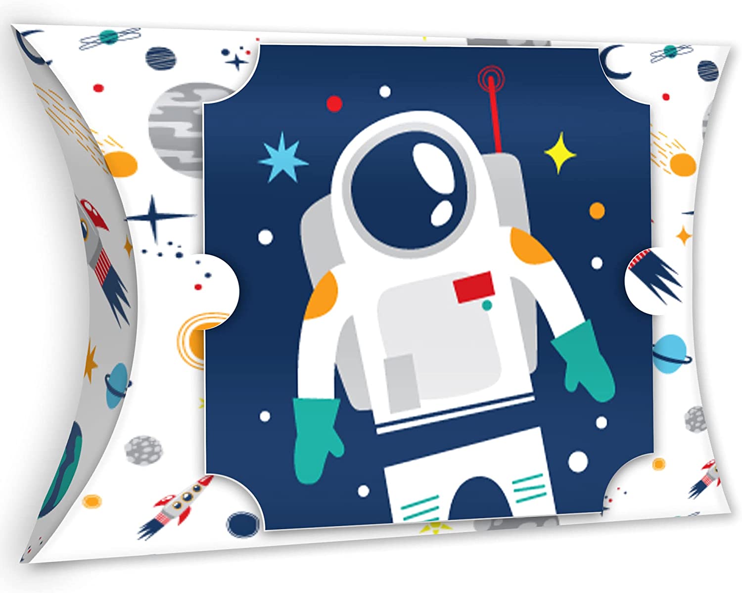 • PREMIUM FAVOR BOXES: Blast Off to Outer Space Large Pillow Boxes are professionally printed on heavy-duty paper with a photo-like shine. The ends have full overlapping flaps; no tape or extra materials needed. They are individually inspected and carefully packaged. Treats, trinkets, and small mementos not included.
