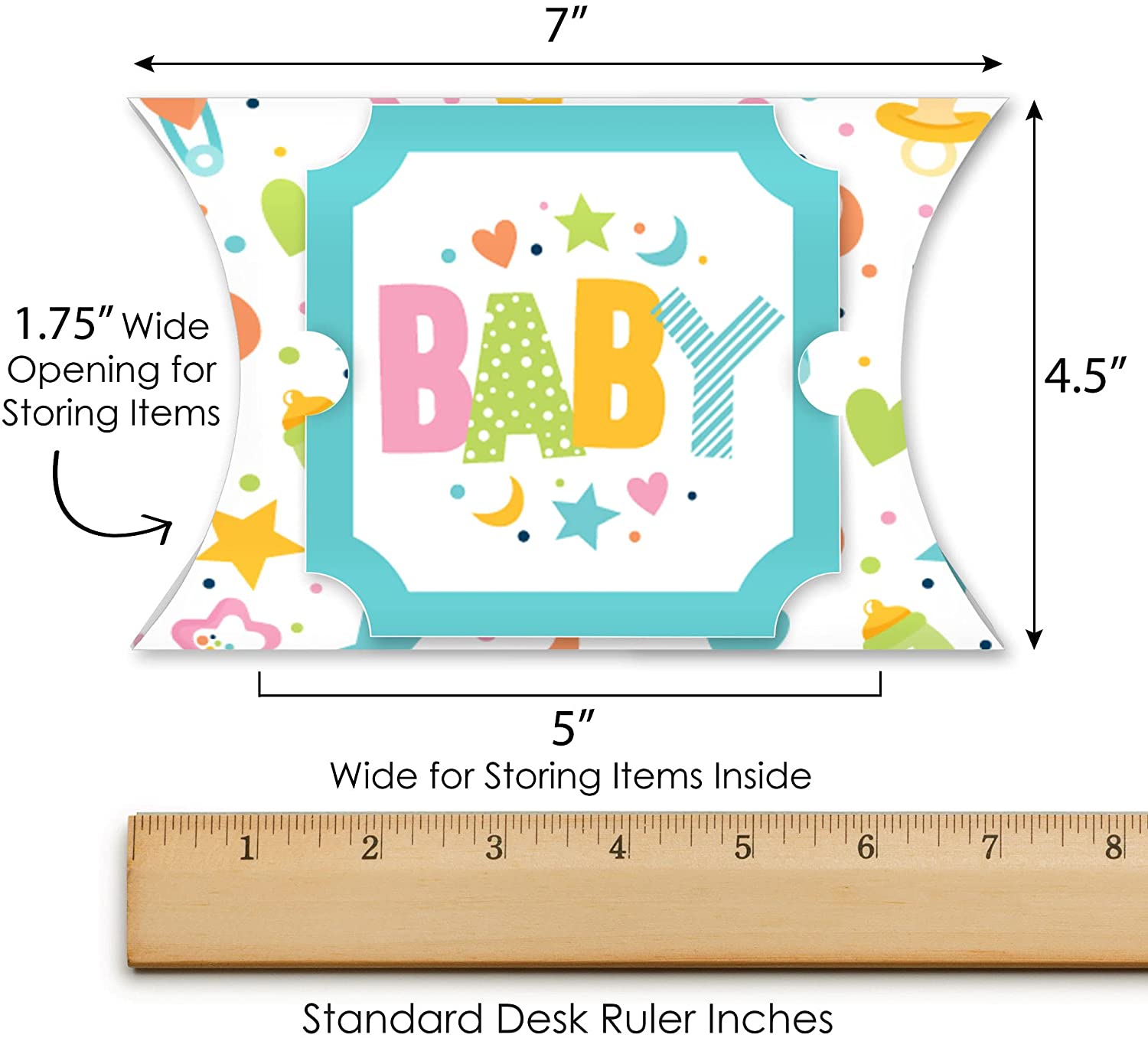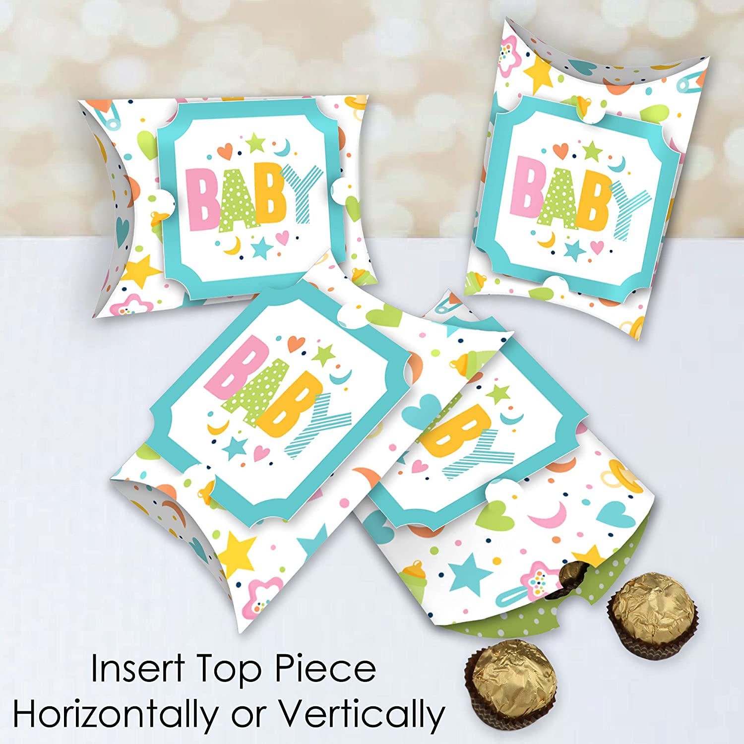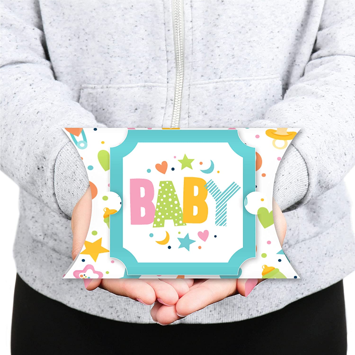 Colorful Baby Shower - Favor Gift Boxes - Gender Neutral Party Large Pillow Boxes - Set of 12 is backordered and will ship as soon as it is back in stock.