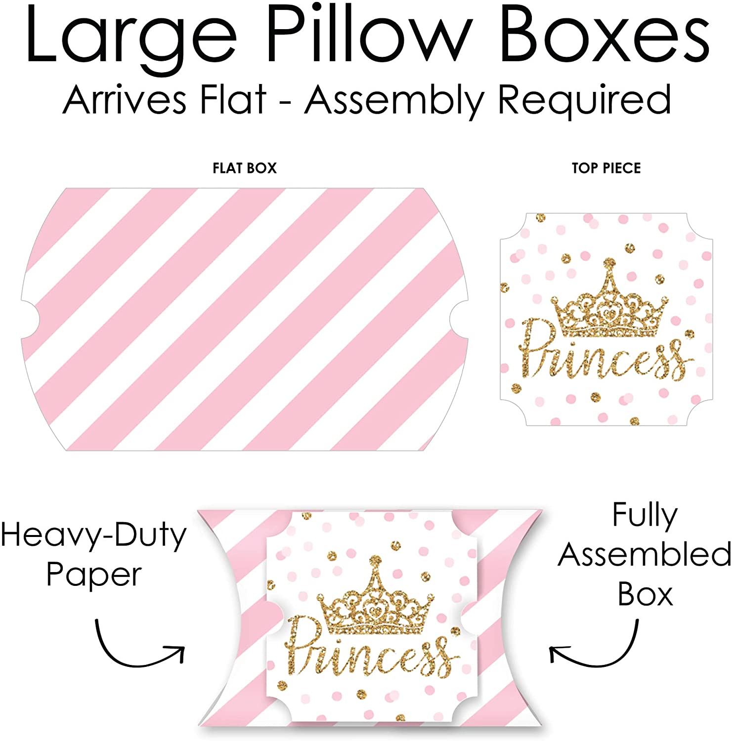 Little Princess Crown - Favor Gift Boxes - Pink and Gold Princess Baby Shower or Birthday Party Large Pillow Boxes - Set of 12 is backordered and will ship as soon as it is back in stock.