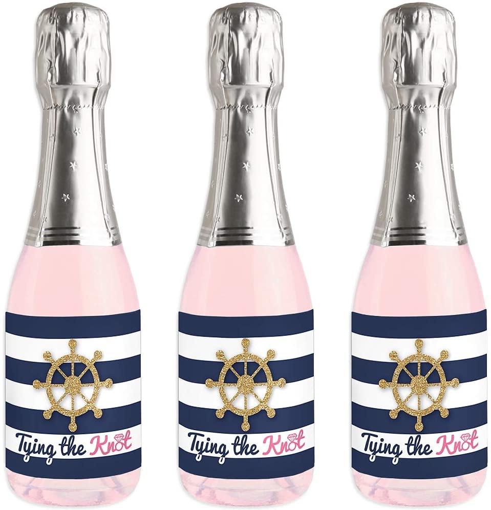 Last Sail Before the Veil - Mini Wine and Champagne Bottle Label Stickers - Nautical Bachelorette and Bridal Shower Favor Gift for Women and Men - Set of 16