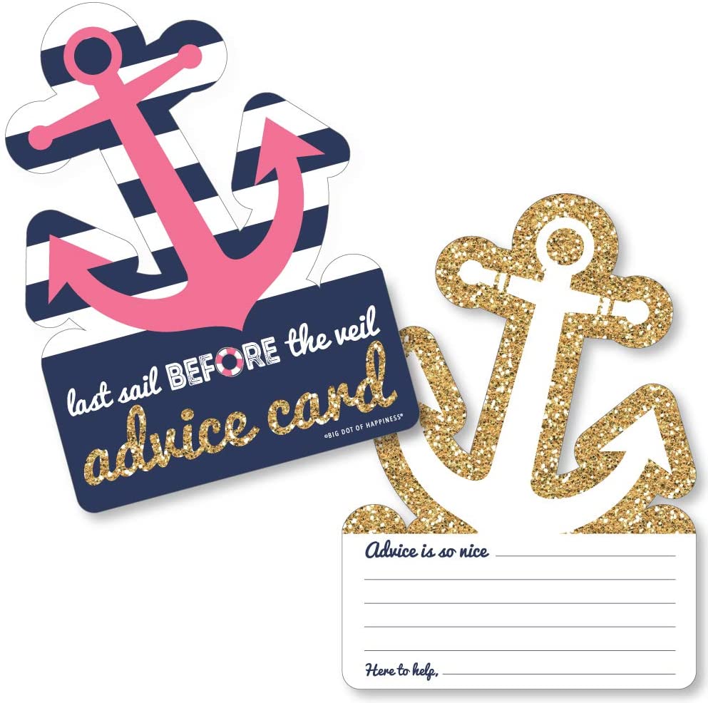 Last Sail Before the Veil - Anchor Wish Card Nautical Bachelorette and Bridal Shower Activities - Shaped Advice Cards Game - Set of 20