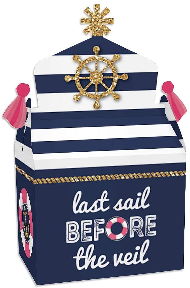 Last Sail Before the Veil - Treat Box Party Favors - Nautical Bachelorette and Bridal Shower Goodie Gable Boxes - Set of 12
