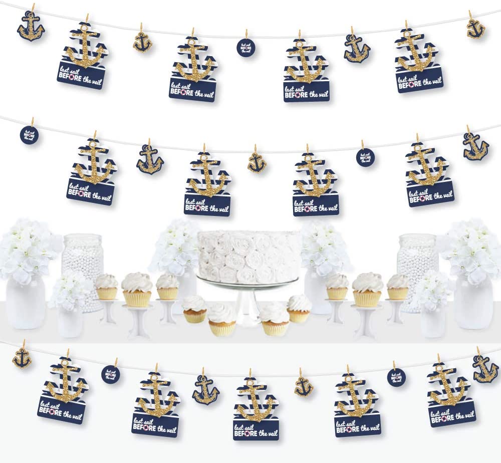 Last Sail Before the Veil - Nautical Bachelorette and Bridal Shower DIY Decorations - Clothespin Garland Banner - 44 Pieces