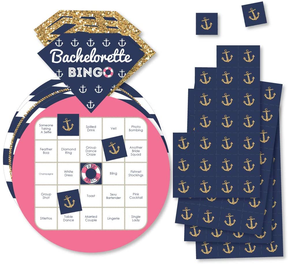 Last Sail Before the Veil - Bar Bingo Cards and Markers - Nautical Bachelorette and Bridal Shower Shaped Bingo Game - Set of 18