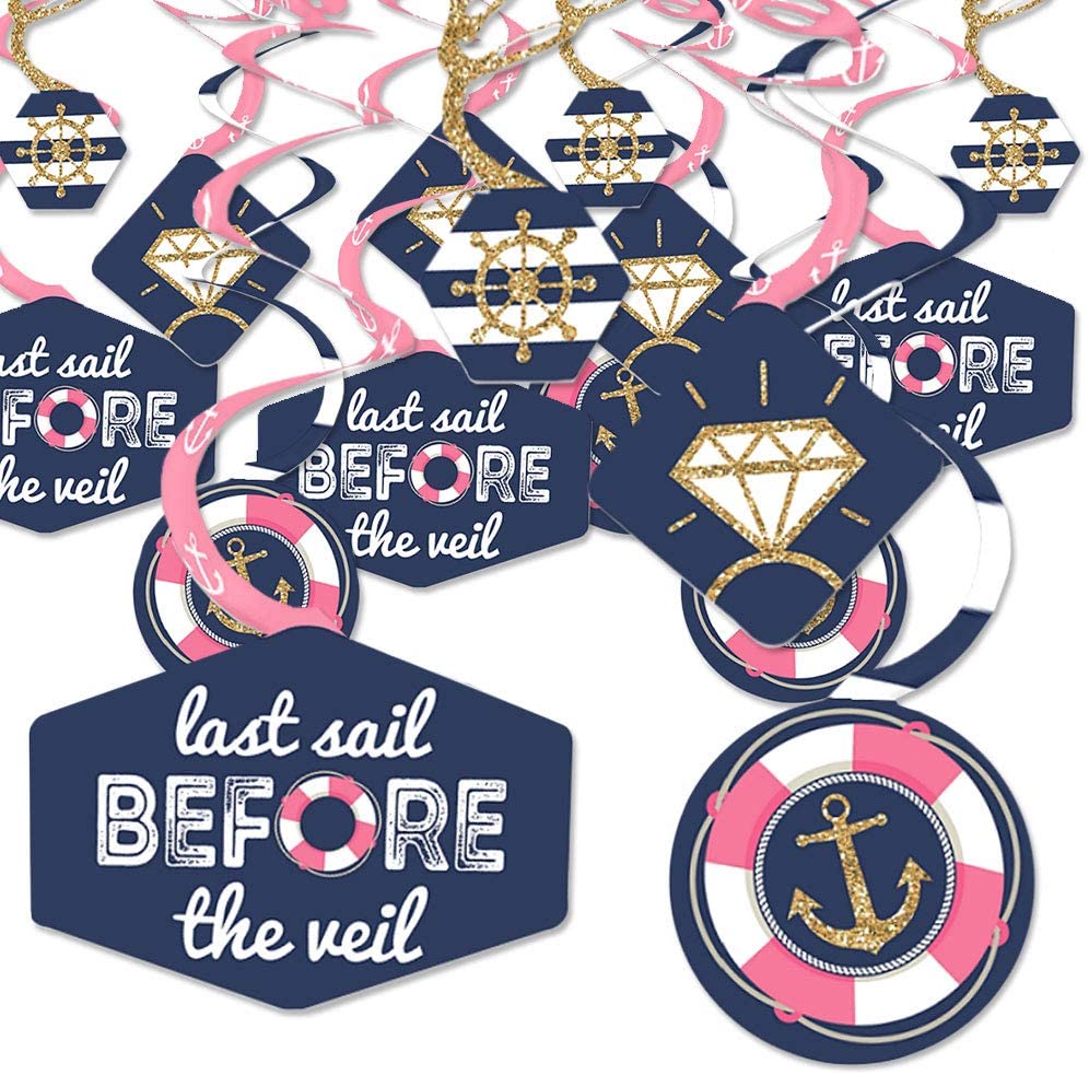 Last Sail Before the Veil - Nautical Bachelorette and Bridal Shower Hanging Decor - Party Decoration Swirls - Set of 40