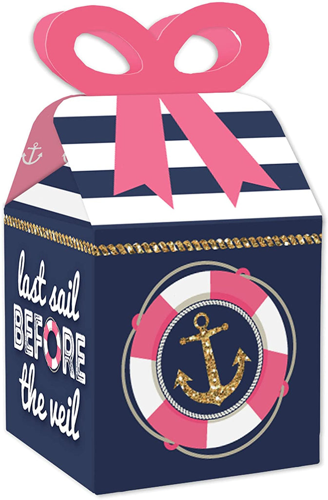 Last Sail Before the Veil - Square Favor Gift Boxes - Nautical Bachelorette and Bridal Shower Bow Boxes - Set of 12