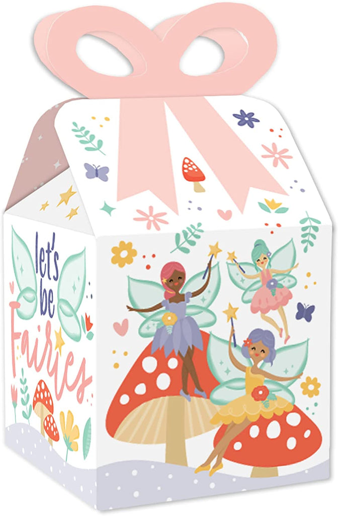 Let’s Be Fairies - Square Favor Gift Boxes - Fairy Garden Birthday Party Bow Boxes - Set of 12