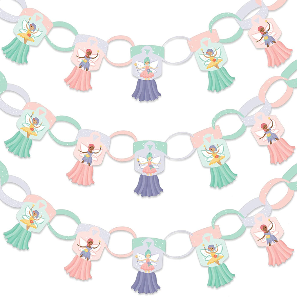 Let’s Be Fairies - 90 Chain Links and 30 Paper Tassels Decoration Kit - Fairy Garden Birthday Party Paper Chains Garland - 21 feet