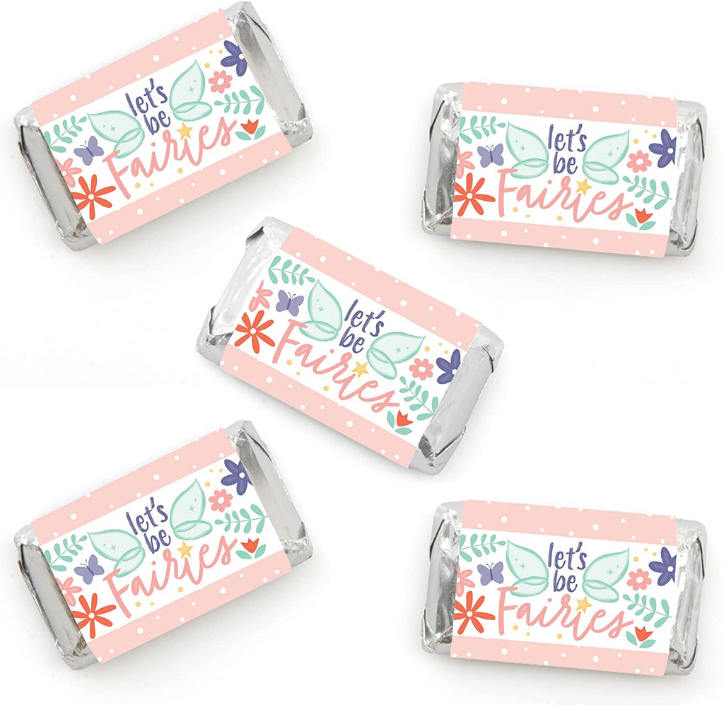 Let’s Be Fairies - Mini Candy Bar Wrapper Stickers - Fairy Garden Birthday Party Small Favors - 40 Count