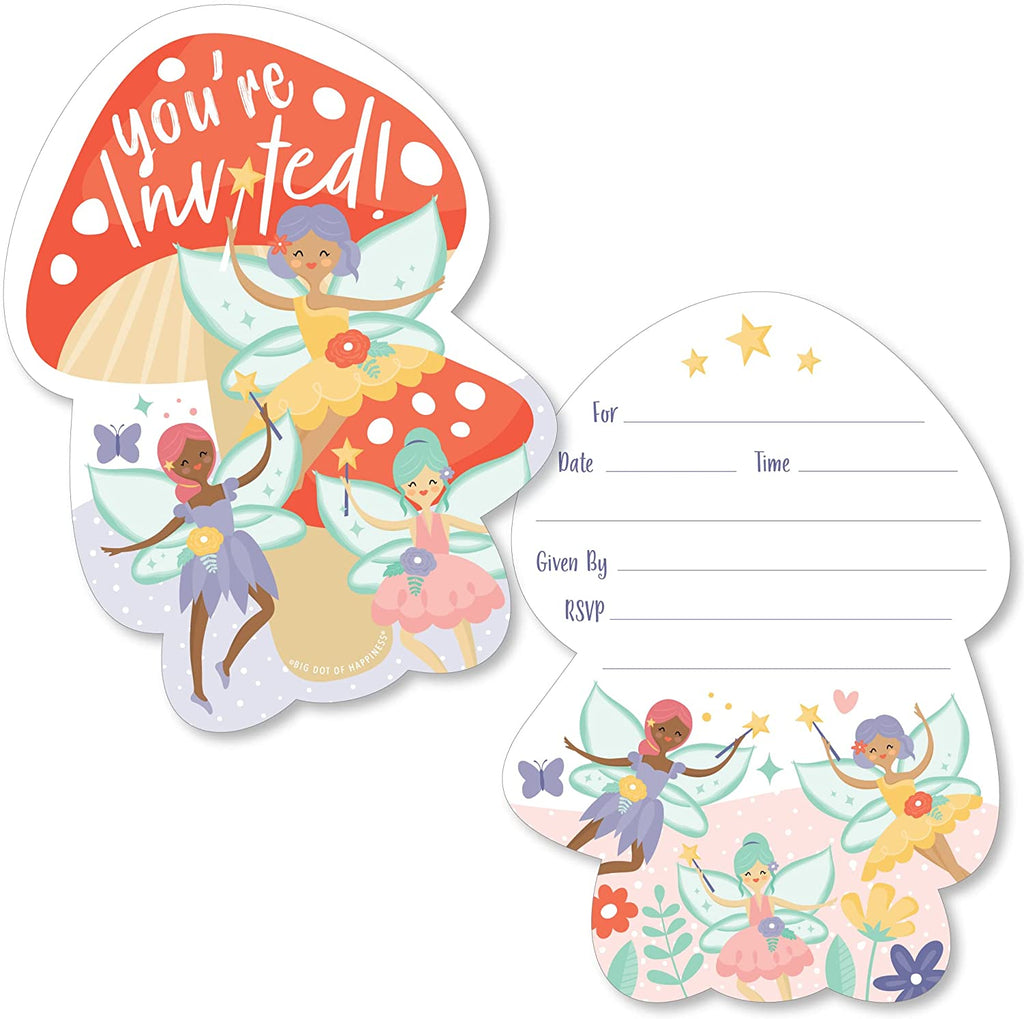 Let’s Be Fairies - Shaped Fill-In Invitations - Fairy Garden Birthday Party Invitation Cards with Envelopes - Set of 12
