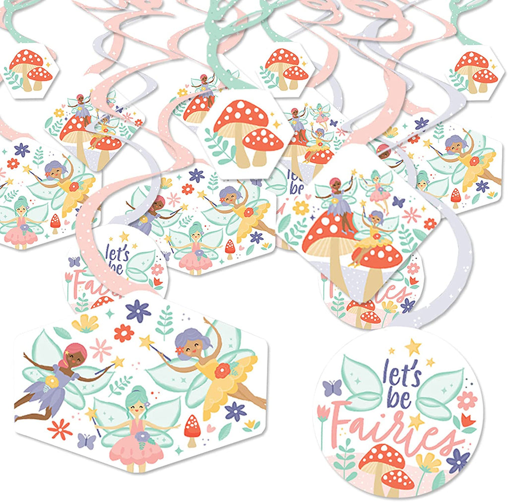 Let’s Be Fairies - Fairy Garden Birthday Party Hanging Decor - Party Decoration Swirls - Set of 40