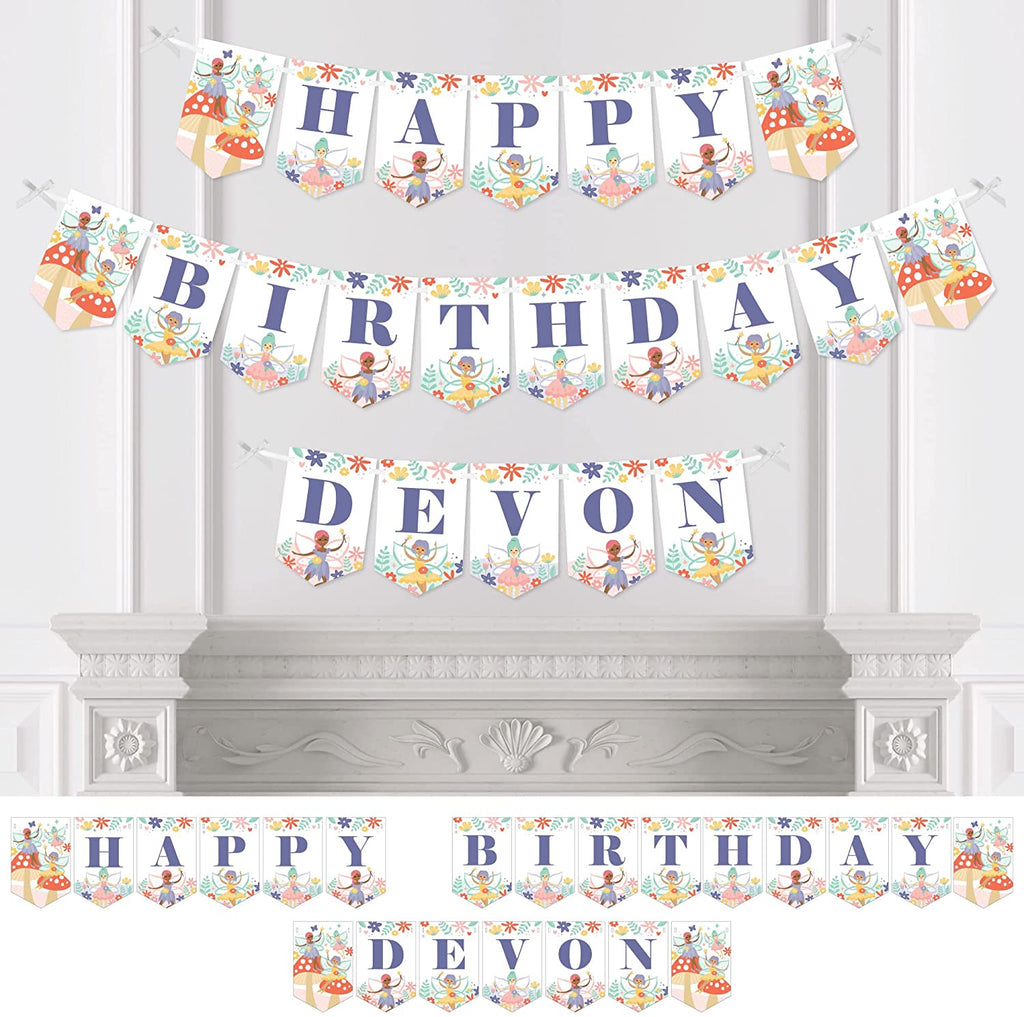 Personalized Let’s Be Fairies - Custom Fairy Garden Birthday Party Bunting Banner and Decorations - Happy Birthday Custom Name Banner