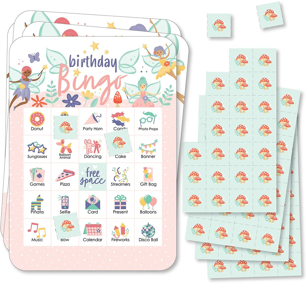 Let’s Be Fairies - Picture Bingo Cards and Markers - Fairy Garden Birthday Party Shaped Bingo Game - Set of 18