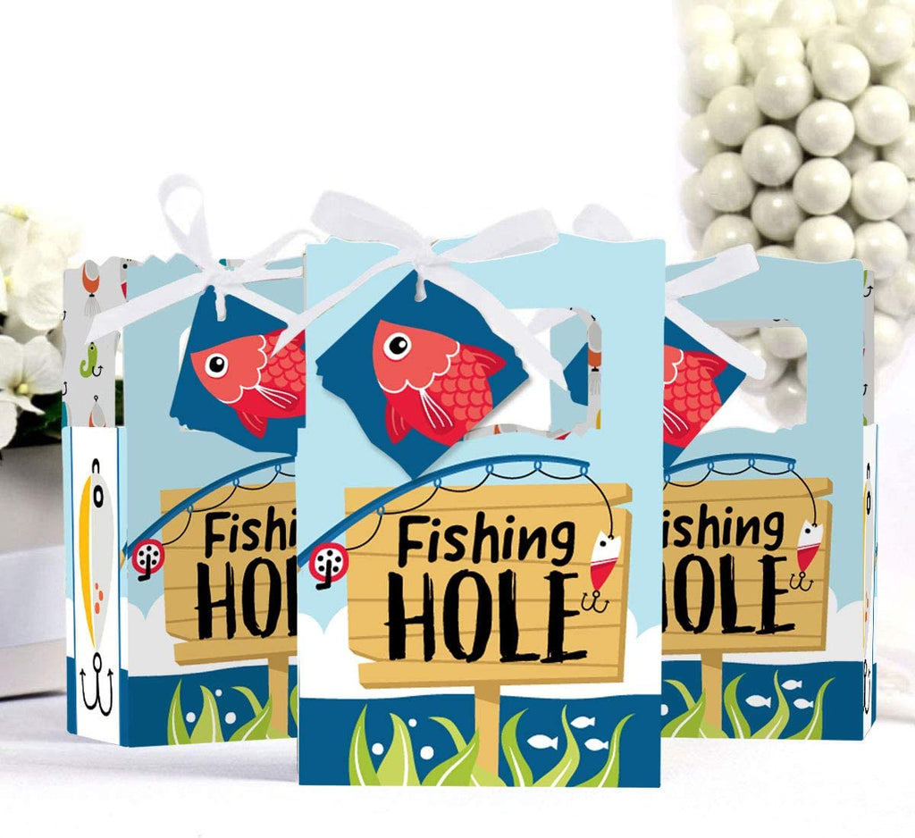 Let’s Go Fishing - Fish Themed Birthday Party or Baby Shower Favor Boxes - Set of 12 is backordered and will ship as soon as it is back in stock.