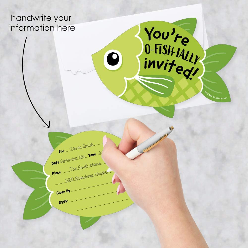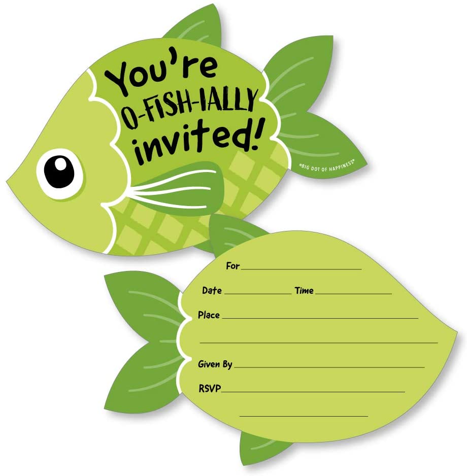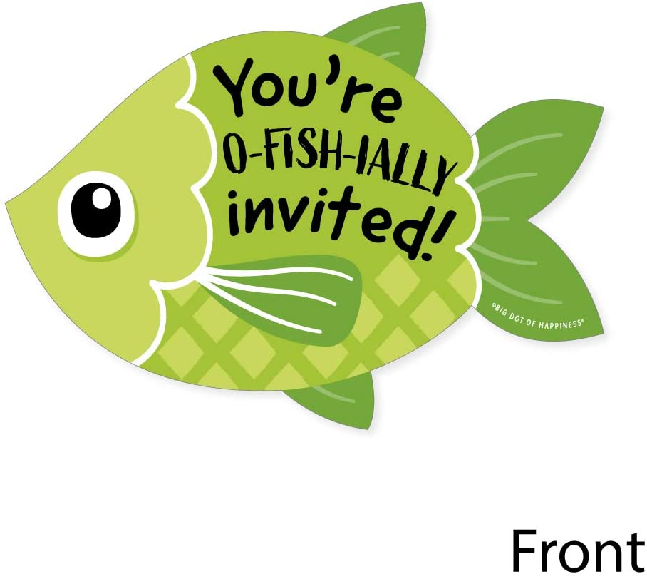 Let’s Go Fishing - Shaped Fill-In Invitations - Fish Themed Birthday Party or Baby Shower Invitation Cards with Envelopes - Set of 12 is backordered and will ship as soon as it is back in stock.